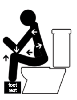 - Use the correct position for sitting on the toilet – you will need a step or stool to put your feet on.