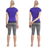Stand tall. Relax your shoulders. Place one hand behind your back and gently slide it along your back to the midline. Gently release to the starting position. Help with your other hand if you can.