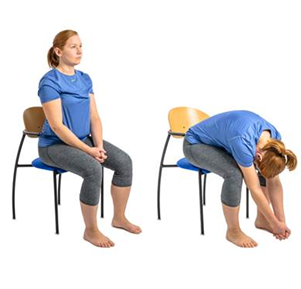 Support your painful side with your opposite hand. Slide your hands down your thigh as far as is comfortable, return to the start position.
