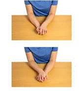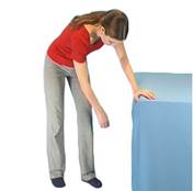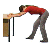 Sit or stand. Place your hands on a table on a towel or kitchen roll.