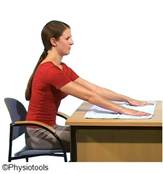 Start with the hand of your painful arm on top of your other hand to help it. Slide your hands along the table, reaching forwards and straighten your elbows as much as possible. Slide your hands back. Do small movements to start with.